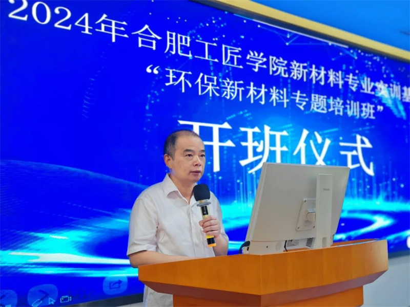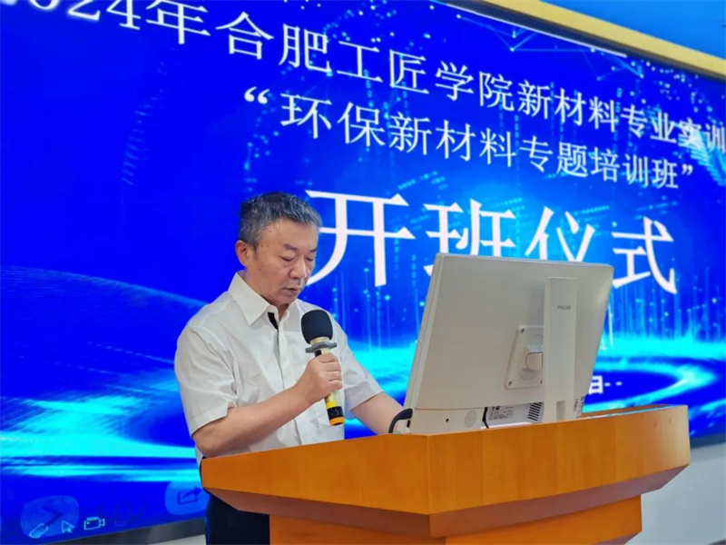 2024年9月9日—9月10日,合肥工匠学院新材料专业实训基地成功举办第一期“环保新材料专题培训班”。合肥市职工大学党委副书记、副校长申广胜,合肥市生态环境保护协会党支部书记、常副会长裴先长,新站高新区总工会副主席梁华友,新站高新区环境生态分局副局长张广以及安徽金年会体育环保科技股份有限公司董事长徐辉出席开班仪式。