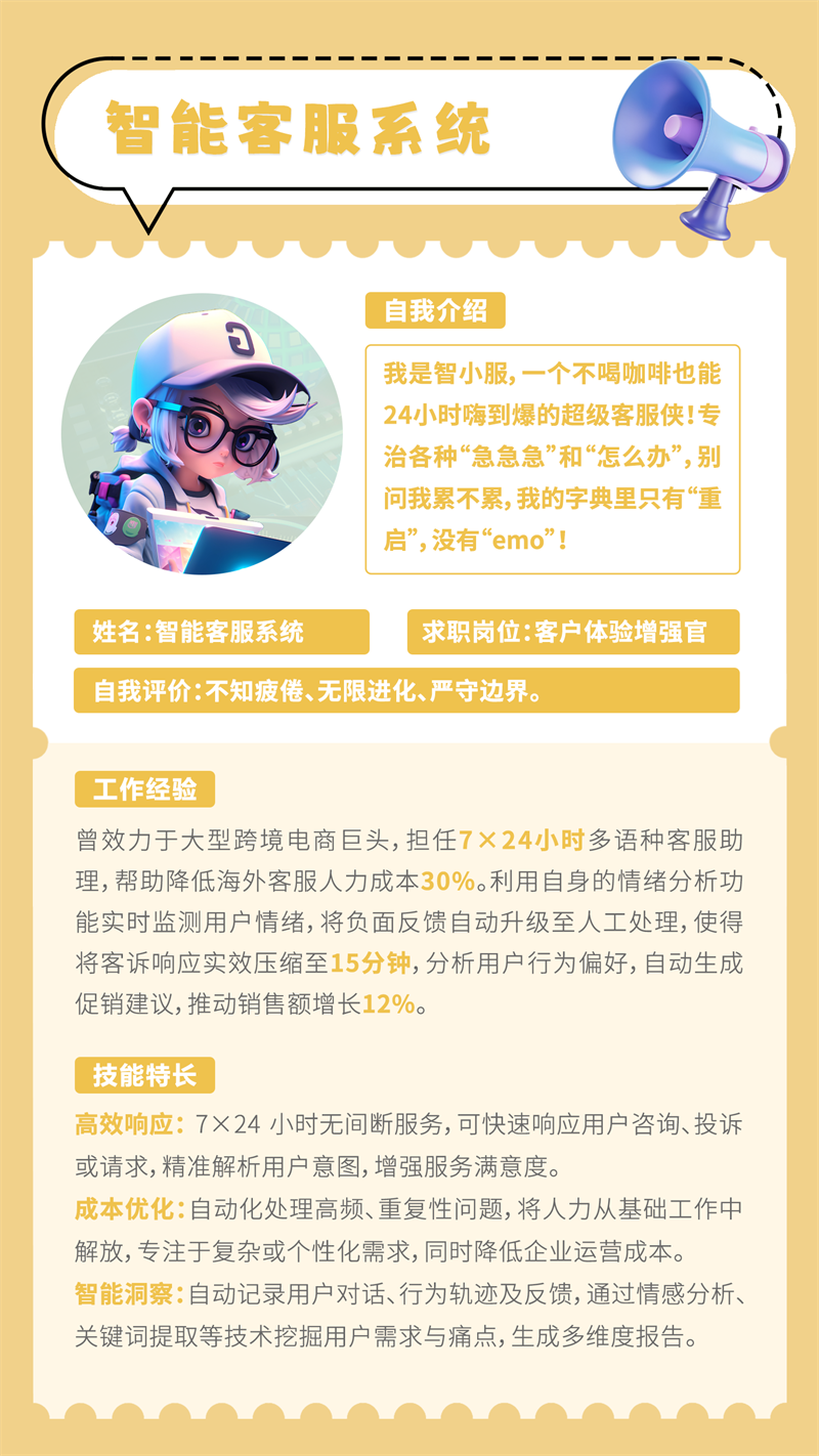了解完这些身怀绝技的小伙伴,是不是想让TA们立即加入你的团队呢?其实,这些智能助手早已在金年会体育科技的多个岗位悄悄上岗,成为了大家并肩作战的同事。
