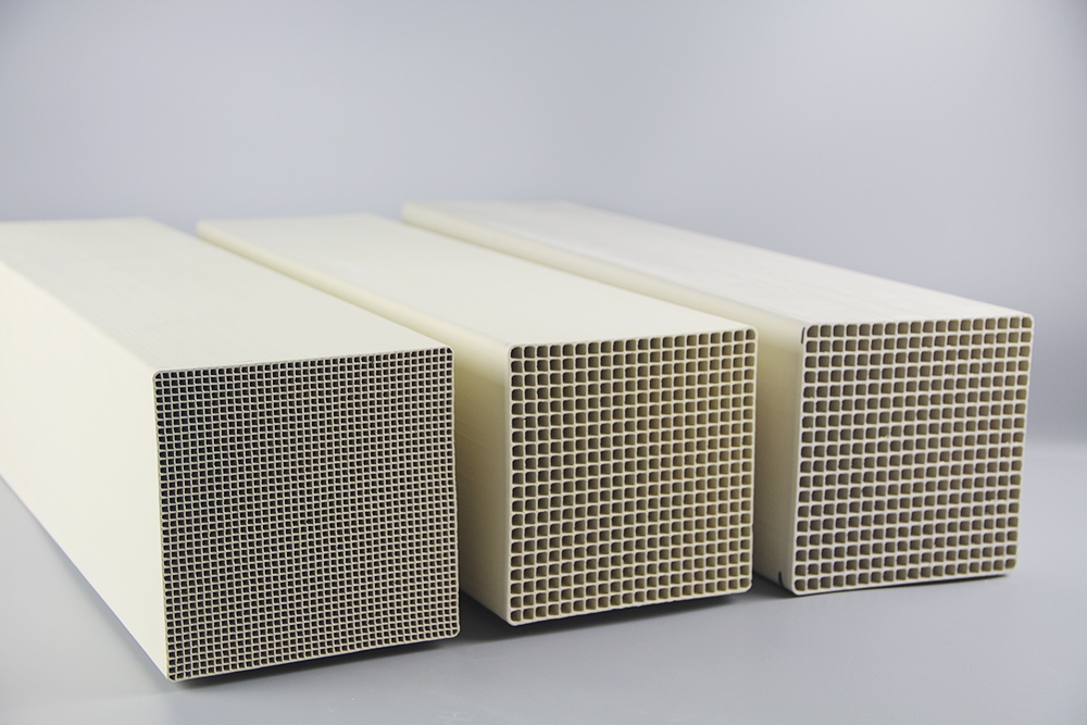 蜂窝式催化剂一般为均质催化剂。将TiO2、V2O5、WO3等混合物通过一种陶瓷挤出设备,制成截面为150mmX150mm,长度不等的催化剂元件,然后组装成为截面约为2m´1m的标准模块。
